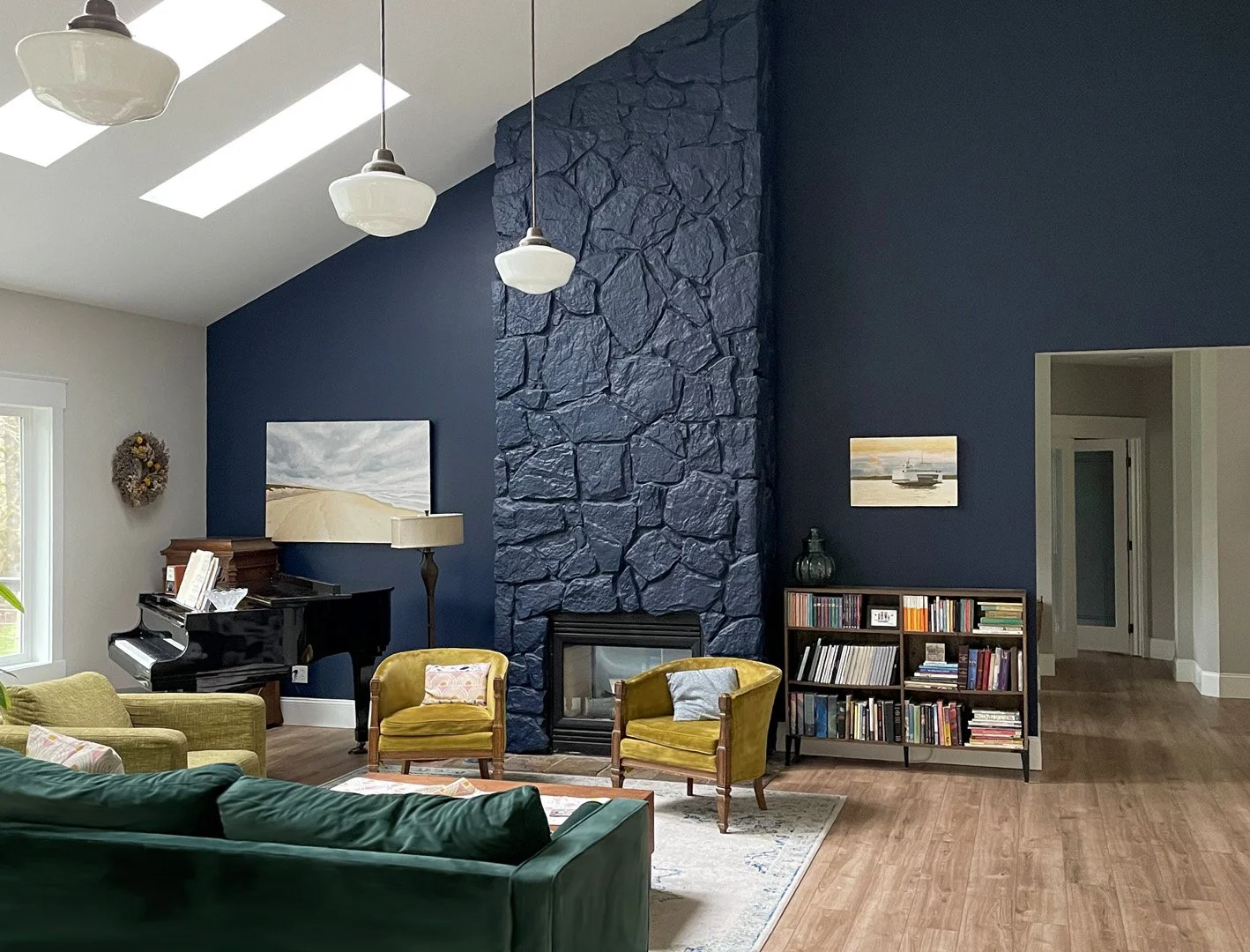 This house was originally designed in the ‘90s for a seemingly sequestered lifestyle. The inefficiency of the existing layout left a lot of space available for reuse. Purchased by a jovial family who likes to entertain, the useless hallways had to go! Now an open plan with plenty of space for guests, the home is bright & light with vivid accents.